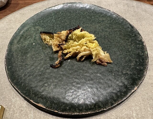前菜最後の品は縮緬キャベツ。シンプルな調理だが甘味旨味、焦げの苦味など、素材を多面的に味わえる一品となっている。