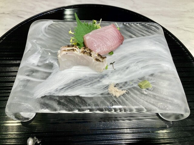 本日の鮮魚は鯛の炙りに鰤の刺身