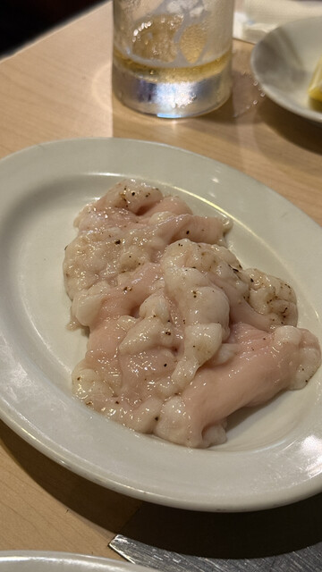 ハツ刺しは臭みが全くなくて、生肉が好きじゃない先輩もパクパク食べていました。美味しくて速攻で食べたので、辛子をつけ忘れてしまったのだけ心残り…