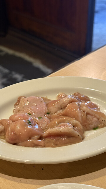 お料理は最初のオーダーで全部頼まないといけない?ようなのですが、メニューが多すぎてハツ刺しとホルモン以外決まらない…と思っていたところ、「是非色々一人前ずつ食べて欲しい!」とお店の方がおすすめを教えてくださったので、お任せしました。