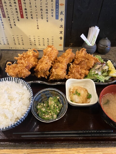 炭火で魚やハンバーグを焼いた定食が定評で人気、ランチどきは近辺で働く人でいっぱい、毎回少し並ぶ