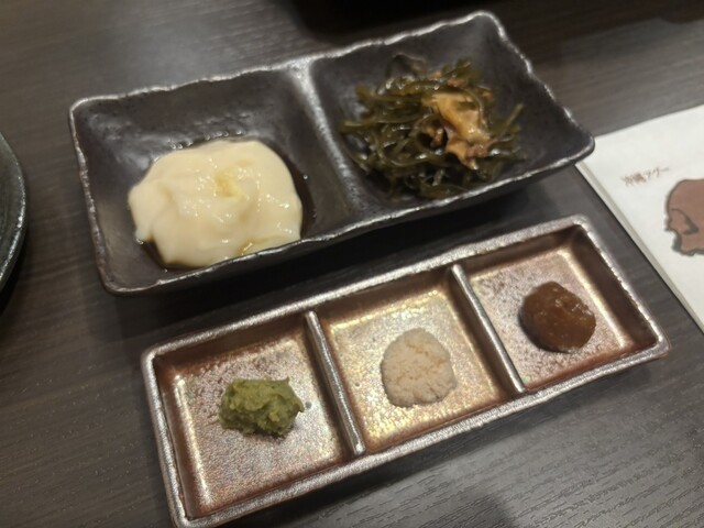 海ぶどうやパパイヤと一緒に食べる豚肉は格別でした。豚肉のつくねも具としても美味しく、店員さんオススメ通り、スープに溶かしても最高でした。