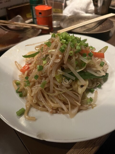 ネギそばの半分盛り 熱い葱油で仕上げる混ぜそば