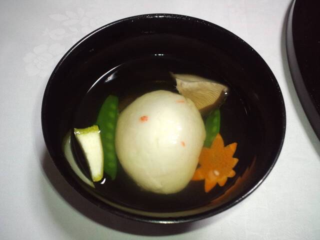 〈椀 物〉蟹真薯、紅葉人参、椎茸、絹さや、柚子