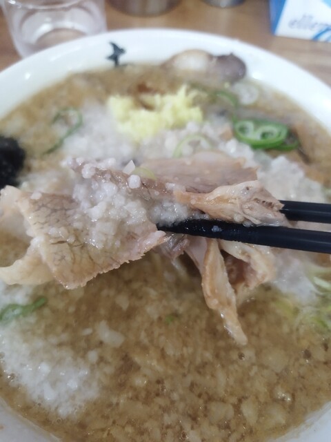 背脂醤油らーめんの中盛大盛3倍盛り選択可1,000円をオーダー。大盛、太麺、追い生姜で。