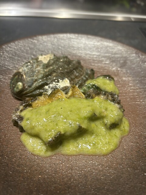バターのソースと海苔とお味噌で頂く鮑が絶品!