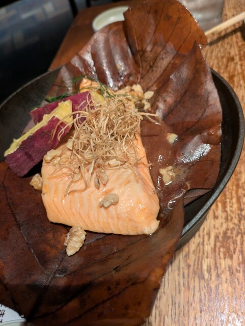 香ばしく目の前で焼き、胡桃味噌とともに!