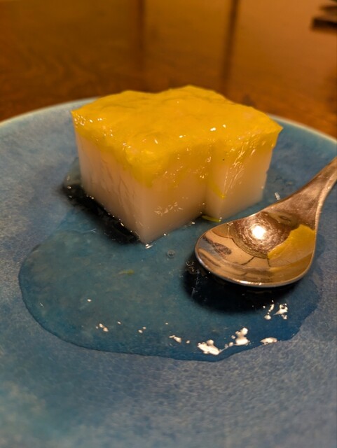 菊羊羹レモンのジュレをかけて…