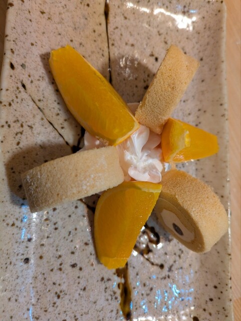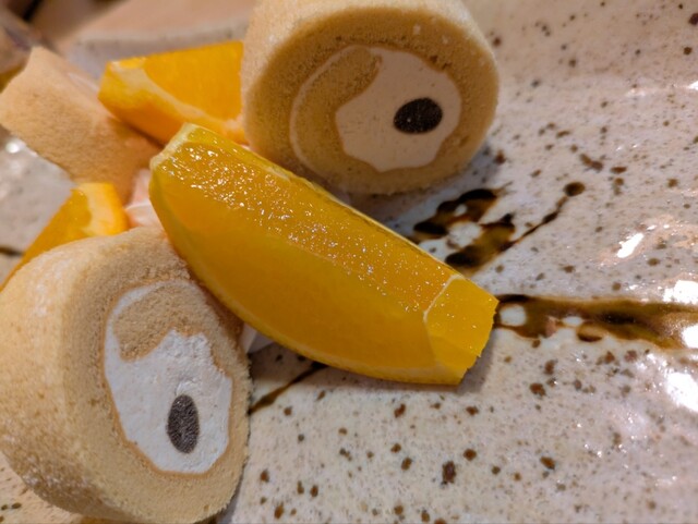 オレンジと、ロールケーキとホイップクリーム