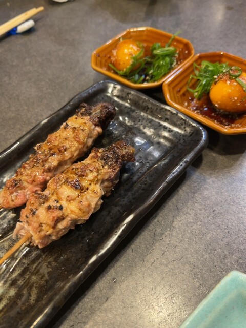 鶏のお刺身の盛り合わせとお任せ串も