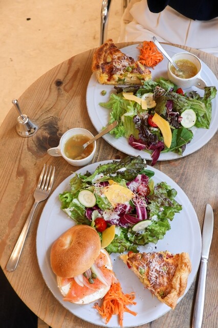 この日は、最初からサーモンベーグルを注文すると決めていましたが、メニューを見ると、モーニングもかなり美味しそうで、スイーツに至っては、なぜこの後に別のお店の予約を取ってしまったのだろうと後悔するほど、すごくおしゃれで可愛らしいスイーツがたくさんありました(∩˃o˂∩)♡