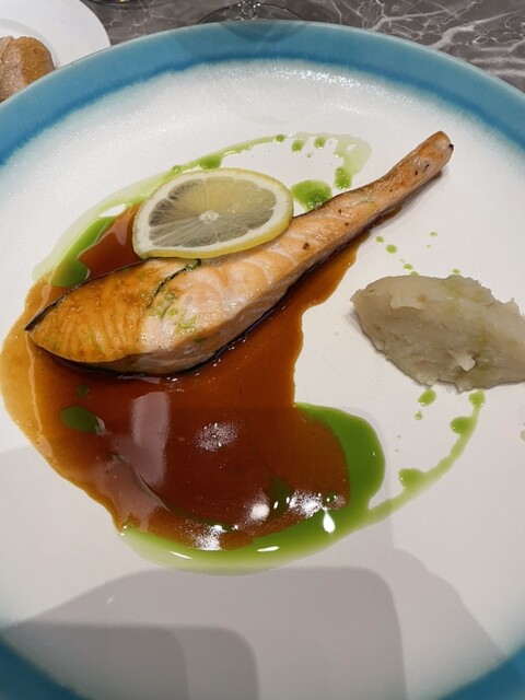 さすが 他店ではない スープ サーモンの味つけ 貴賓室のあつらえも素敵でした ワインも美味しく 接客も丁寧でした また 伺いたいです