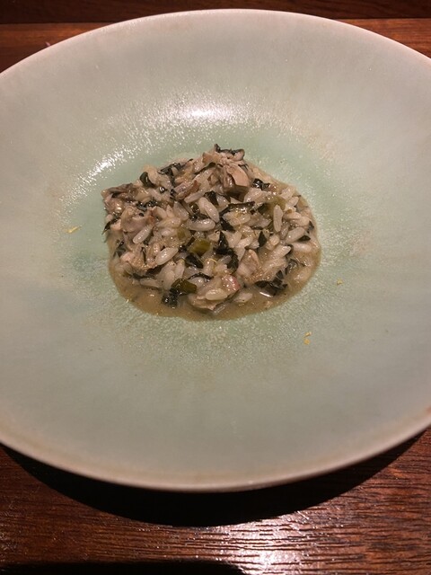 カキとチーズが濃厚なリゾットで、黒キャベツがいいアクセントになっています。