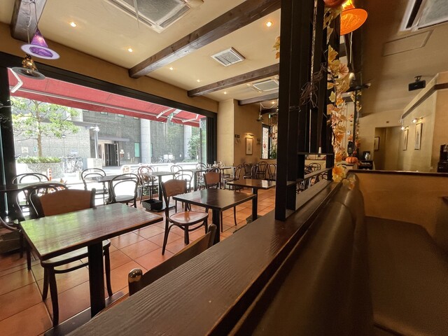 駅側の入口からはそこまでに見えませんでしたが中はかなり広く、反対側は開閉できるタイプのオープンテラスでした。