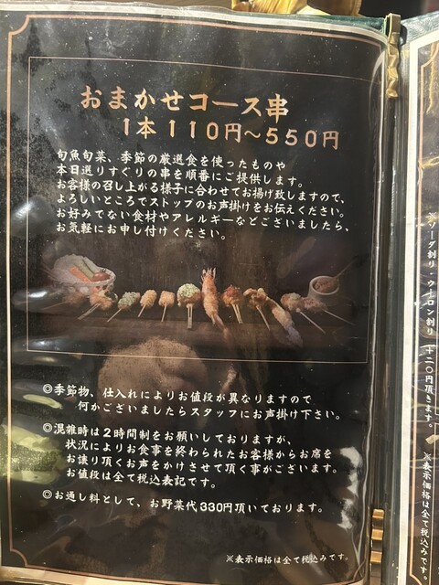 【おまかせコース】(1本110円〜550円)
