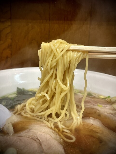 しなやかなストレート細麺に飽きの来ない醤油スープの組み合わせ