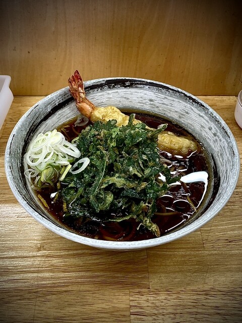 春菊天と海老天そばに…一杯分ずつ丁寧に揚げられる天ぷらは見てるだけでも楽しくなります