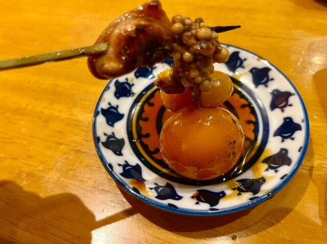 プチッと弾ける卵黄の濃厚なコクが、口の中いっぱいに広がる衝撃の一串。