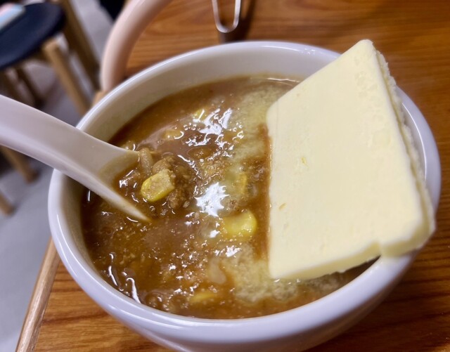 味噌ダレとバターの濃厚な香りが広がり、もちもちのちぢれ麺と挽肉がよく絡む。