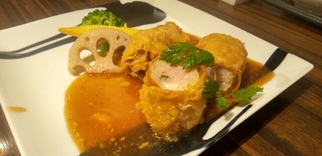 お薦めメインも、えびの香りが高く、春巻の揚げ具合も素晴らしい。