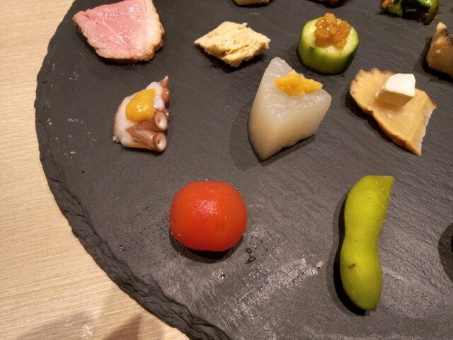 合鴨ロース、もずく酢、だし巻き、たこ酢味噌など、丁寧にお味付けしておられ、本当に素晴らしい。