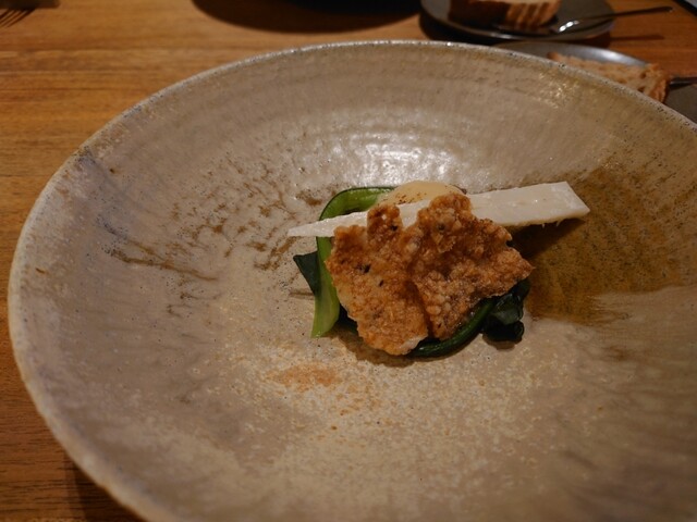 レビューを書くのが遅くなってしまったため曖昧な記憶で書くが、最中は発光させた何かが入っていて、少量なのにギュッと濃縮された旨味が詰まっていてハートを掴まれた。料理もさながら、ウエイターさんが料理の名前だけでなくどんなものなのかもすべて把握されていて、詳細に教えてくれるのが料理の楽しみをより一層引き出していたように思う。