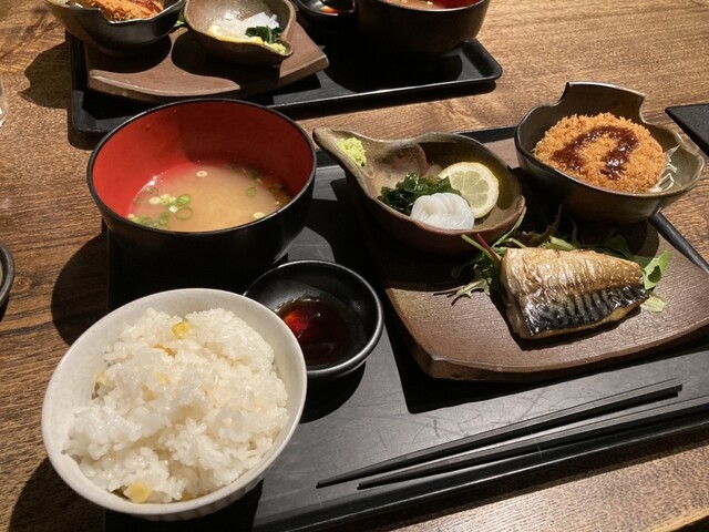 ランチメニューの野趣家御膳1200円。今日はサバでした。