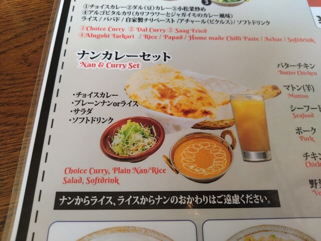 チョイスカレーは、ポーク、マトン、チキン、野菜の4つのうちから選べます。