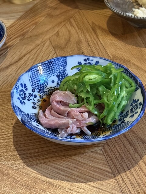 この日は、もずくキムチ、へしこのポテサラ、和牛ユッケ的青椒肉絲といった変化球メニューからスタート。どれもひと工夫が効いていて、酒が進む。