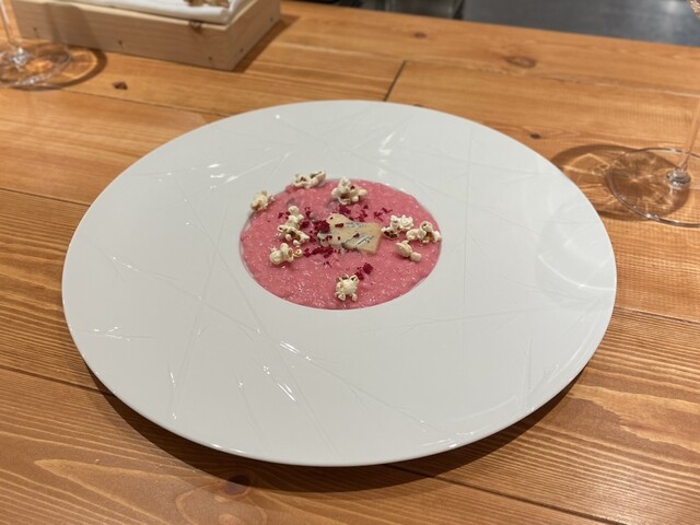 秋を感じられる食材を使ったお料理がたくさんでした。長野のビーツとトウモロコシのリゾット、最高に美味しくかったです。生ハムとシャインマスカット、白インゲンに国産の天然ムール貝などなど…