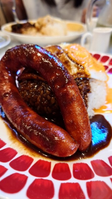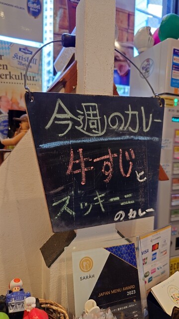 土曜日の17時に訪問。この日は店員さんが1人だけということで、カレーとドリンクのみの営業。食券機で国産無塩せきソーセージのカレーとトッピング(目玉焼き)のチケットを購入。さらに席で生ビール(パウラーナー)を注文。ドイツビールの苦味と濃く深いカレーを味わい、猛暑を乗り切る鋭気を養うのでした。