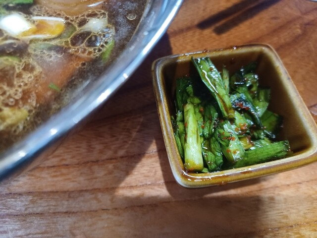 甘くてマイルドな味噌味に潰しニンニンのパンチがいいです。サービスのバカニラを麺と一緒に食べると更に美味しいです。