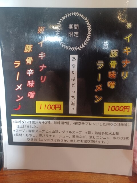 イキナリ豚骨味噌ラーメン1000円