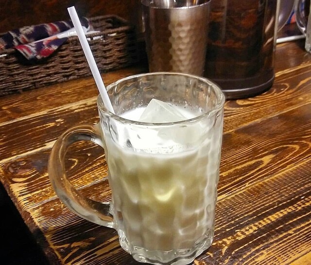店内は香辛料の香りがして良い感じです。席に案内されて注文はチキンの辛さ6でスープ量はデフォ、エナック鶏卵ゆで卵をトッピングし、ラッシーも頼みました。