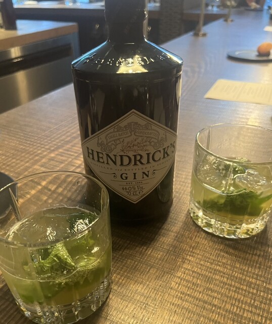 スコットランド産ジン。きゅうりが加えられたジンですっきりした味。お茶と大葉を混ぜてサーブいただきましたがこれが美味しすぎる…‼︎