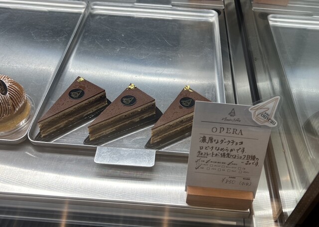 スイーツ最高難度クラスのオペラに「自慢の一品」と説明があり期待が高まります…綺麗すぎる断面にどきどき。。美味しい!!!