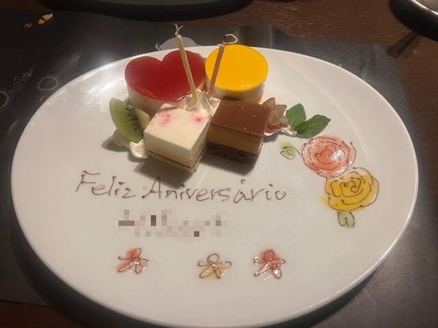 食事の終盤には、ケーキとポルトガル語のバースデーソング。記念写真まで撮って、その場で手渡してくれた。