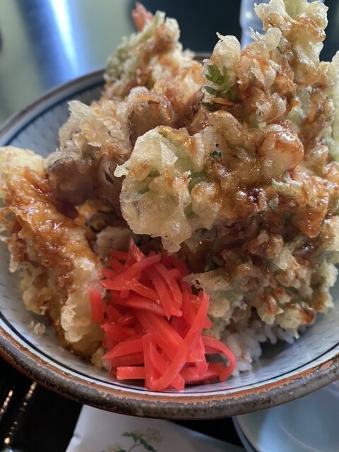 天丼はサクサクでタレの味も美味しい、そして何より大きな海老に感動。こんなに身がぎっしりの海老天は初めて。お蕎麦はコシがあり、これまた美味しい。