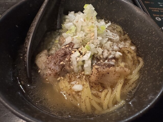 ビルの鉄の扉を開けると、そこにはカウンターが映える大人の隠れ家空間。まず驚かされるのが名物の酢牛。酢豚の牛肉版という発想ながら、コクのある牛肉と甘酸っぱいタレの相性が抜群で一気に虜になります。ピリ辛ホルモン煮込みは、旨みが凝縮された深い味わいで箸が止まりません。揚げ焼きステーキイチボは、赤身の旨さと上品な脂が広がる贅沢な一皿。幻のミノポンズは程よい歯ごたえとポン酢のキレが絶妙で、最後まで大満足のお店です。料理の美味しさにお酒も止まらず4杯目。最後はラーメンも頂いてごちそうさまでした。