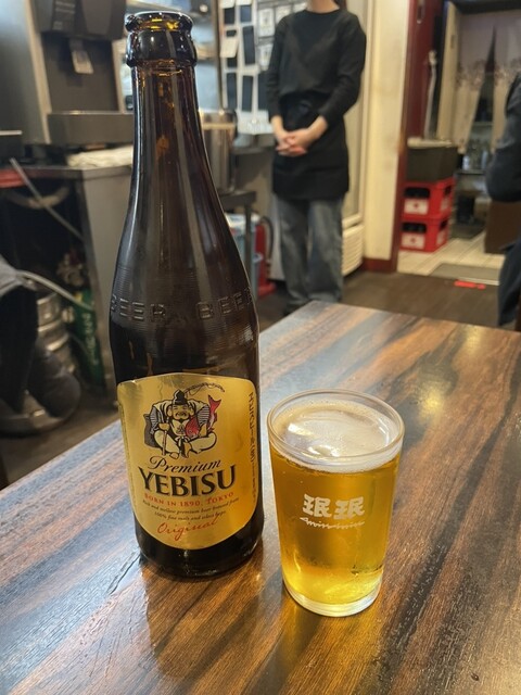 瓶ビールはエビスがあるのが個人的には◎。料理はどれも美味しくて、水餃子は優しい味付けで薄皮の餃子がするすると食べれちゃいます。鶏唐揚げの黒胡椒あめだき、海老とにんにくの芽炒めは「王様」には無いメニューで、味・ボリュームとも抜群!!締めの五目チャーハン(写真だと少なく見えますがしっかり量あります)で大人2人 腹パンフィニッシュ! 謝謝珉珉!