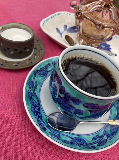 外のテラスで山の自然を味わいながらコーヒーをいただけます。珈琲一杯が高級ですが、焙煎された珈琲で美味しいです。すごくおしゃれな雰囲気です。