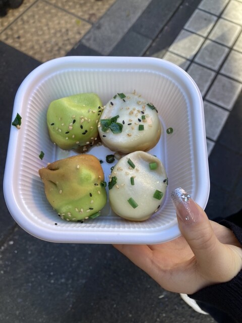 焼小籠包 2種盛りセット750円→ホウテンカク 焼いてあるので、下がカリカリ!上はぷにぷに!カリカリで美味しい〜初めて食べたけど、美味しすぎてびっくり!値段は高いですが、それだけ払う価値はあると思います!肉汁も中にたっぷり入っていました〜