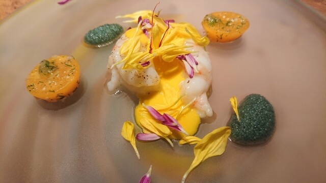 ボタンエビ 菊の花のソース(近くで)