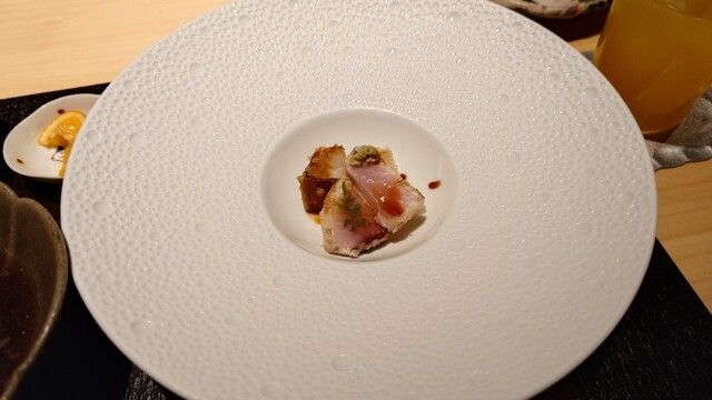 ヒラメの昆布〆を乗せて大根おろしとなめこを和えたもの