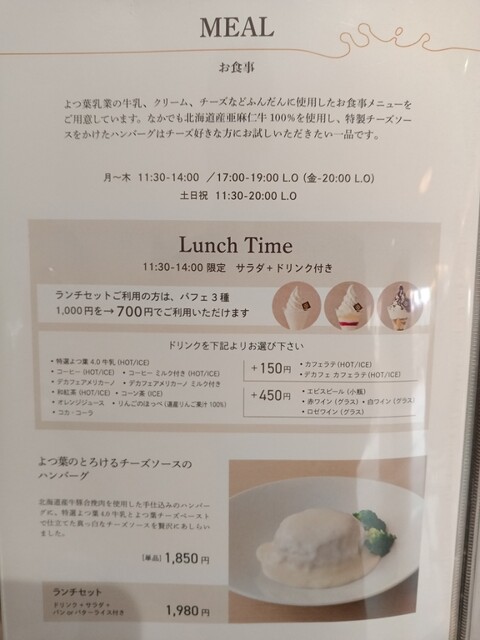 牛乳と乳製品で有名なよつ葉の直営店舗で初めての食事‼️