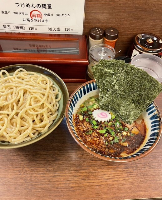 ・辛つけ麺(中盛りor大盛り選べて、折角なので大盛り)