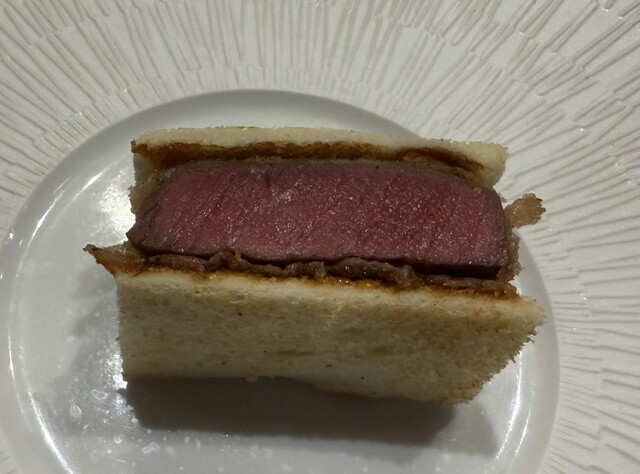 12皿目は、ヒレカツの衣に味噌を浸し、サンドイッチにしたもの。