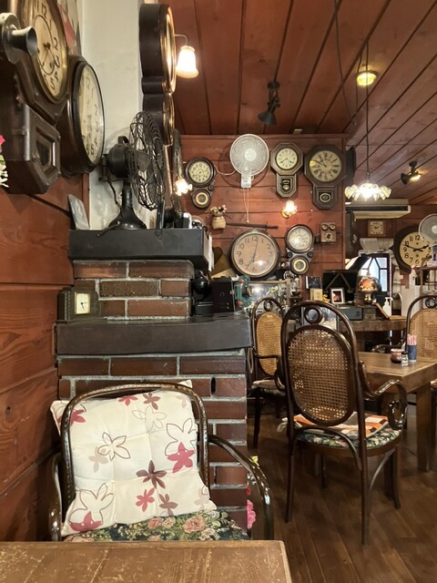 さまざまな古時計と、電話機やカメラなどなどのアンティークに囲まれ、静かなJAZZを聴きながらゆったり時を過ごせます。