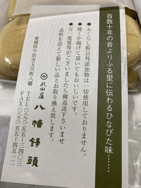 お盆なのでお店が開いているか心配でしたが、9時半頃に着くと営業中で、出来立ての八幡饅頭を購入することができました。
