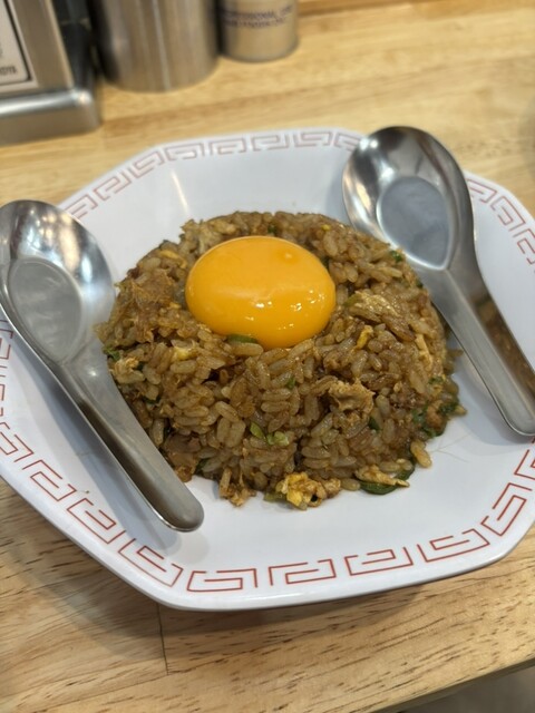 以前、違う尾道ラーメンを食べに通りかかっていつか行こうと思っていたこちらのお店に行きました。10時半過ぎということで、店内にお客さんはいませんでしたが、食べていたらお客さんが数組来られました。入店後、入り口で食券を購入します。平日はラーメン大盛りとネギ増量が無料です。食券を買う際に店員さんが『大盛り食べられますか〜』と声をかけて下さいました^_^ラーメン大盛りネギ増し、チャーハン卵乗せを注文しました。麺はかためで、スープは見た目は黒っぽいですが、しょうゆ辛くもなくく、うまい!チャーシューもとてもいい味をしています。黒チャーハンも卵と絡めていただきました。近くに有名店もありますが、私的にはこちらのお店が尾道ラーメンで1番です^_^
